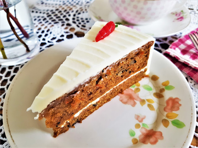 | Lovely pot of Earl Grey tea with carrot cake. |